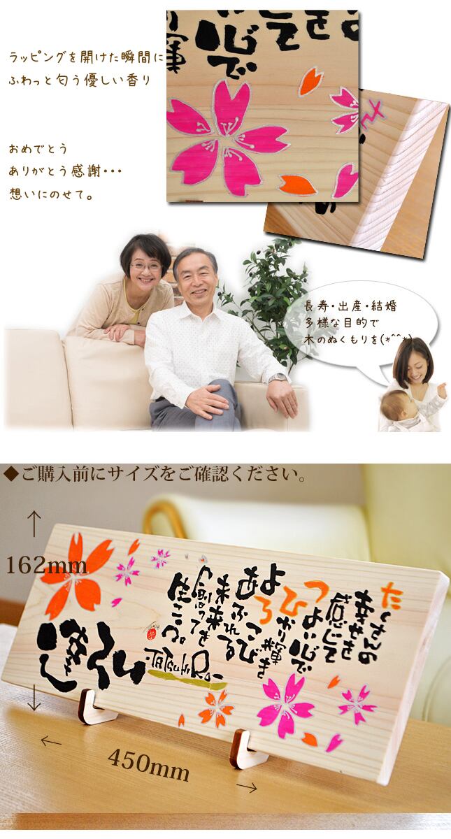 美作ヒノキ 長方形 Sakura-桜- 詩制作 1~2人用 退職祝い 笑描き屋たくと 手書き 名前詩 名前ポエム オーダー オーダーメイド