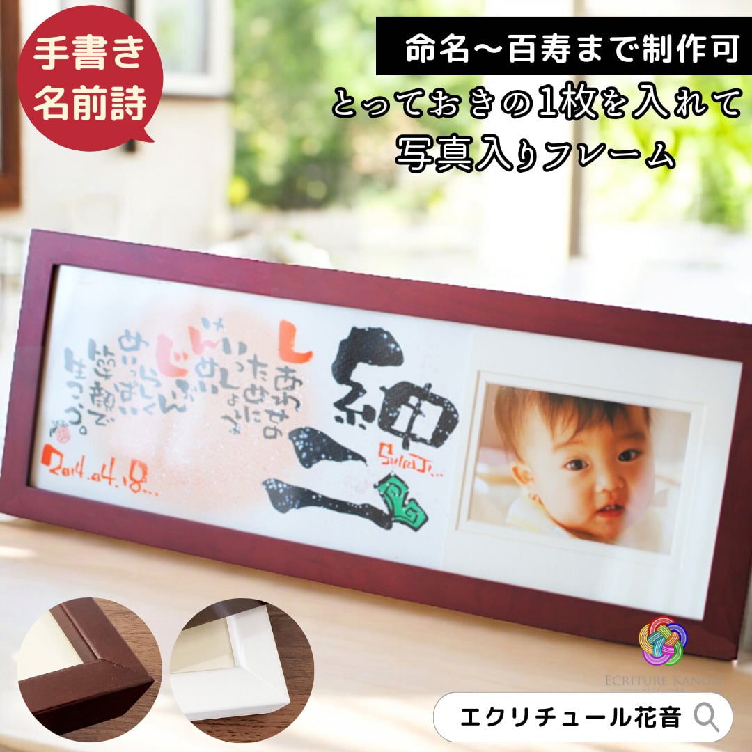 フォトフレーム付き 横長 名前詩 1-2人用 笑描き屋たくと 手書き 名前詩 名前ポエム オーダー オーダーメイド